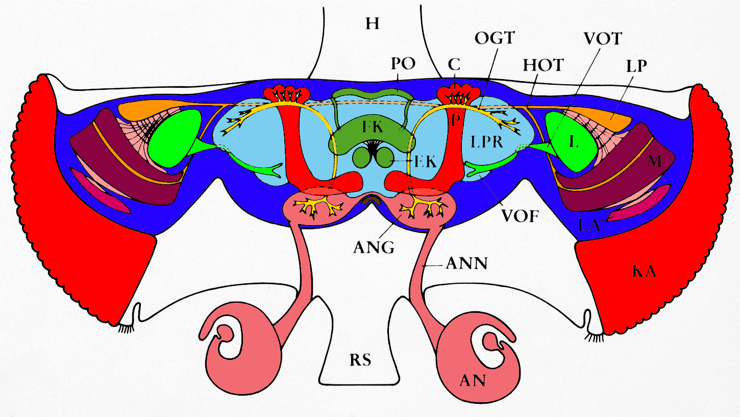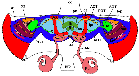 The following schematic view onto the brain of an adult fly is a clickable imagemap.